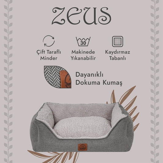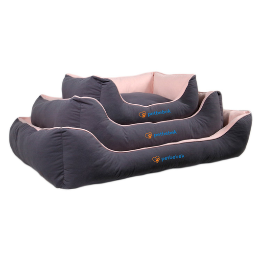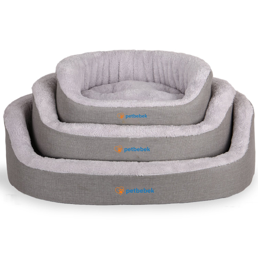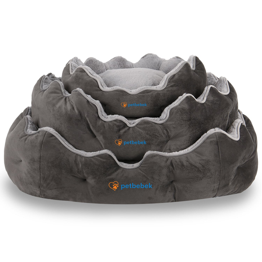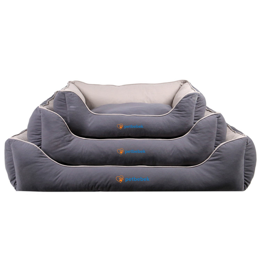 Petbebek™, Çift Taraflı Minderli, Kaydırmaz Tabanlı, Yıkanabilir, Yüksek Kaliteli Kedi ve Köpek Yatağı (Gri)