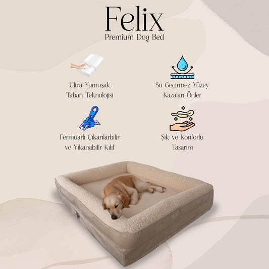 Petbebek™, Visco Süngerli, Ultra Yumuşak, %100 Su Geçirmez Alezli, Çıkarılabilir Kılıflı, Kedi ve Köpek Yatağı (Krem & Bej)